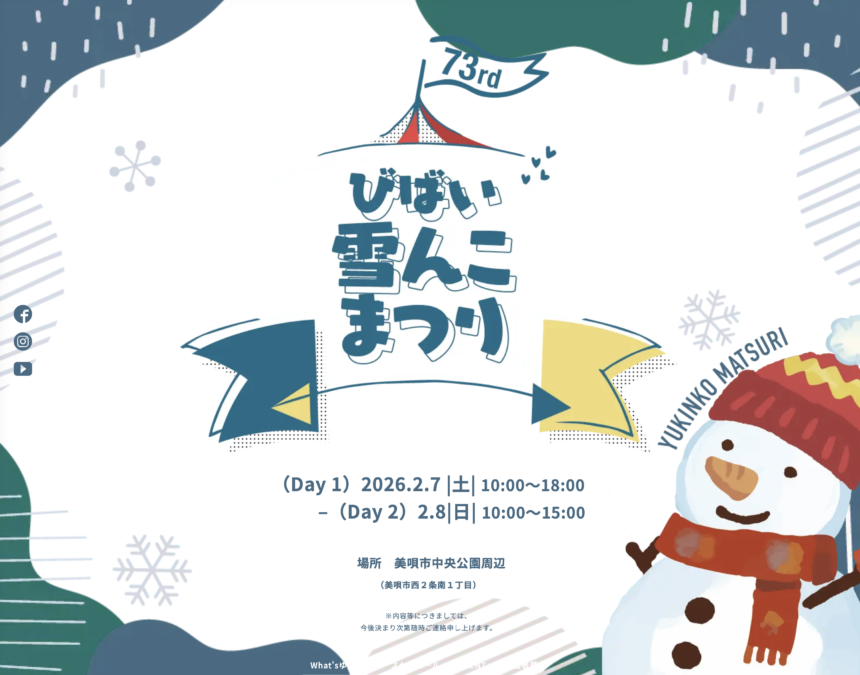 来年も開催決定!「美唄雪んこまつり2026」 [開催日時]2026年2月7日(土)・8日(日)